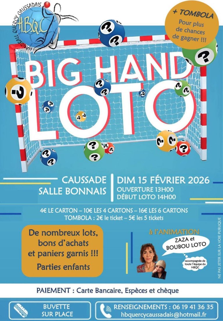 Le Handball Quercy Caussadais (HBQC) vous invite à participer à son grand loto annuel le dimanche 15 février 2026 !